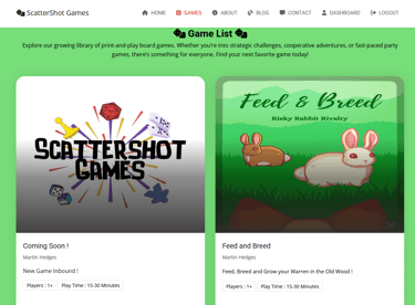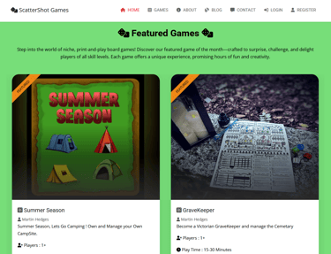 Scattershot Games needed a professional, engaging online platform to showcase their unique board game creations. I developed a responsive, visually appealing website that highlights their featured games, provides dedicated pages for each product, and incorporates a blog to connect with their audience.